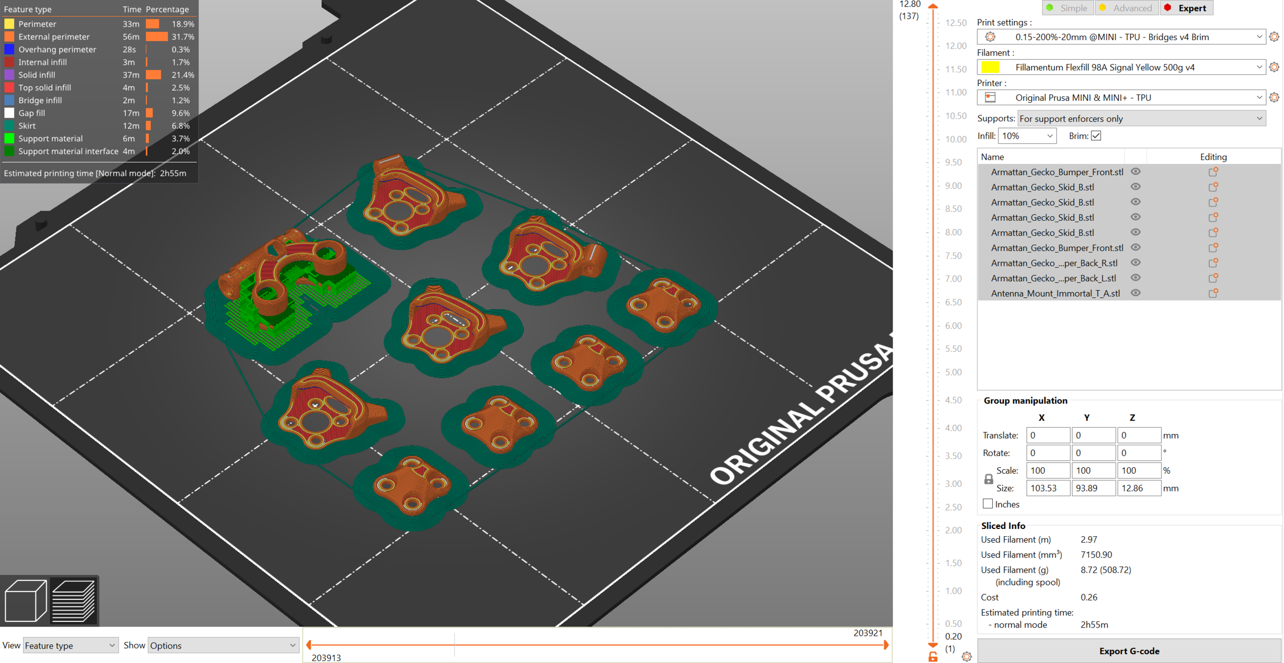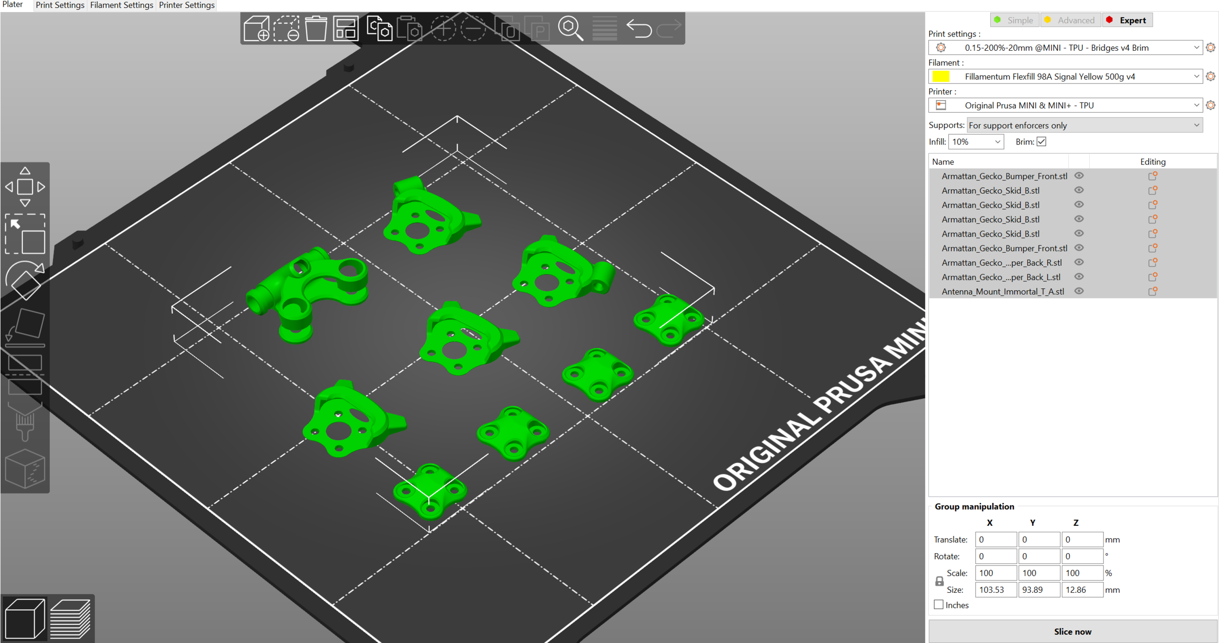 I’m using a modified Fillamentum Flexfill 98A modified filament profile, modified printer settings, and modified print settings just to get this series of parts to print correctly.